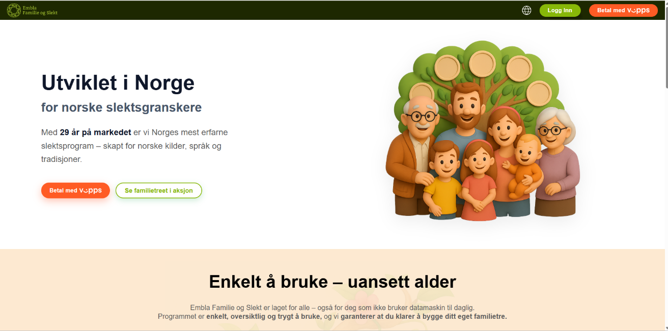 Vi er glade for å kunne tilby Vipps som en ny og enkel betalingsmåte for kjøp av Embla Familie og Slekt . Med Vipps kan du gjennomføre kjøpet raskt og sikkert direkte via www.embla.no.
