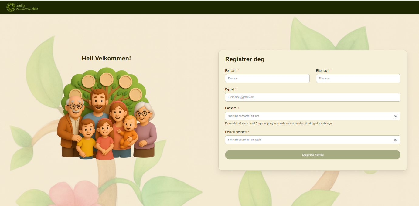 - Husk passordet du velger, da du trenger det ved senere innlogging.